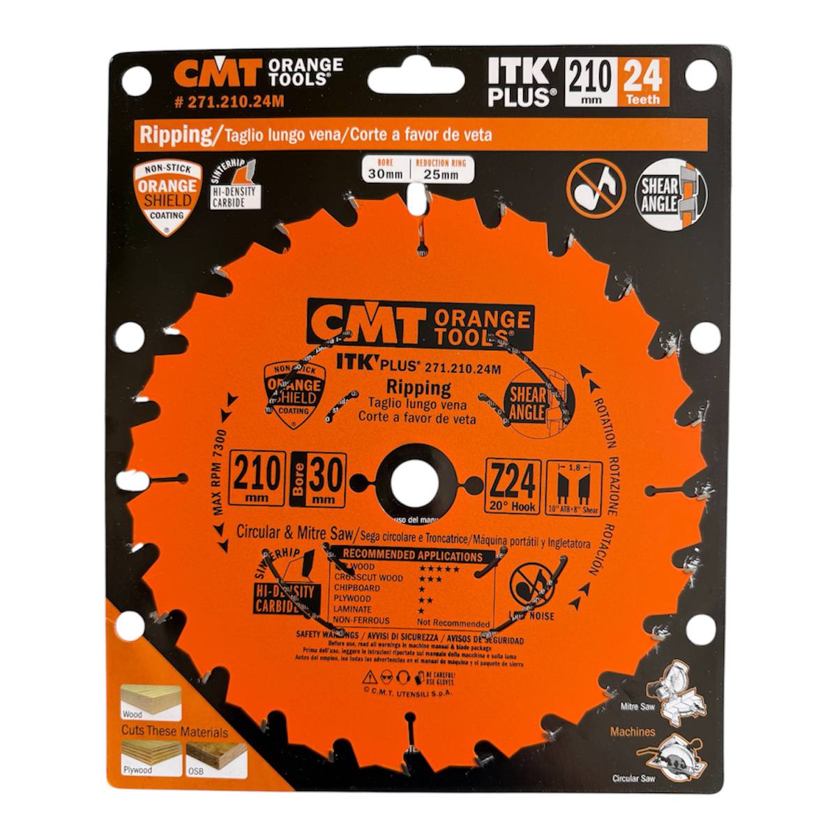 Пильный диск CMT 271.210.24M серии ITK PLUS предназначен для продольного распила древесины. Благодаря тонкому пропилу он обеспечивает чистый рез, минимальное количество отходов и пониженную нагрузку на инструмент. Идеально подходит для работы с ручными и аккумуляторными циркулярными пилами.