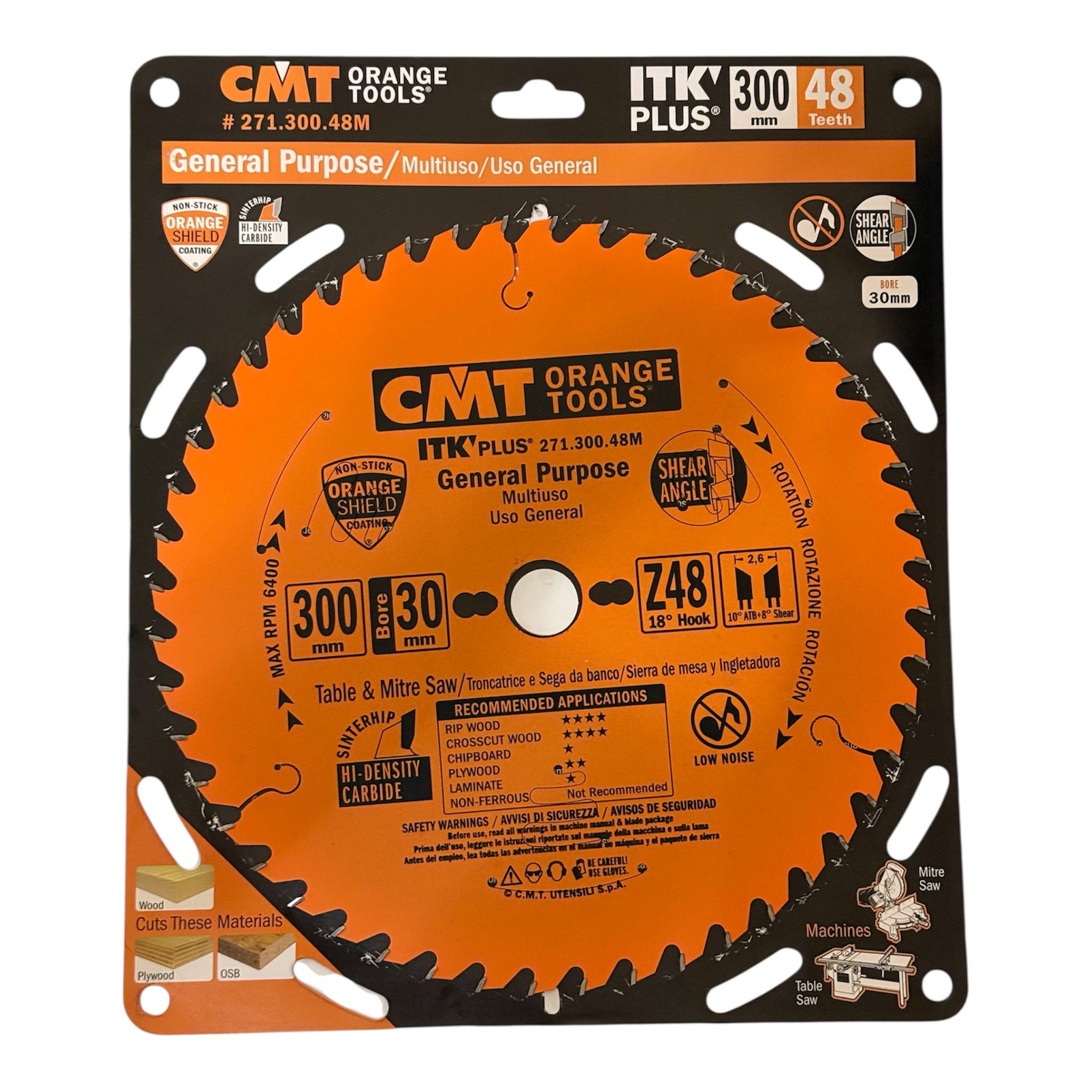 CMT 271.300.48M ITK Plus – пильный диск 300×30×2,6×48Z для универсального реза древесины и плитных материалов. Обеспечивает чистый рез, долговечность и высокую производительность.