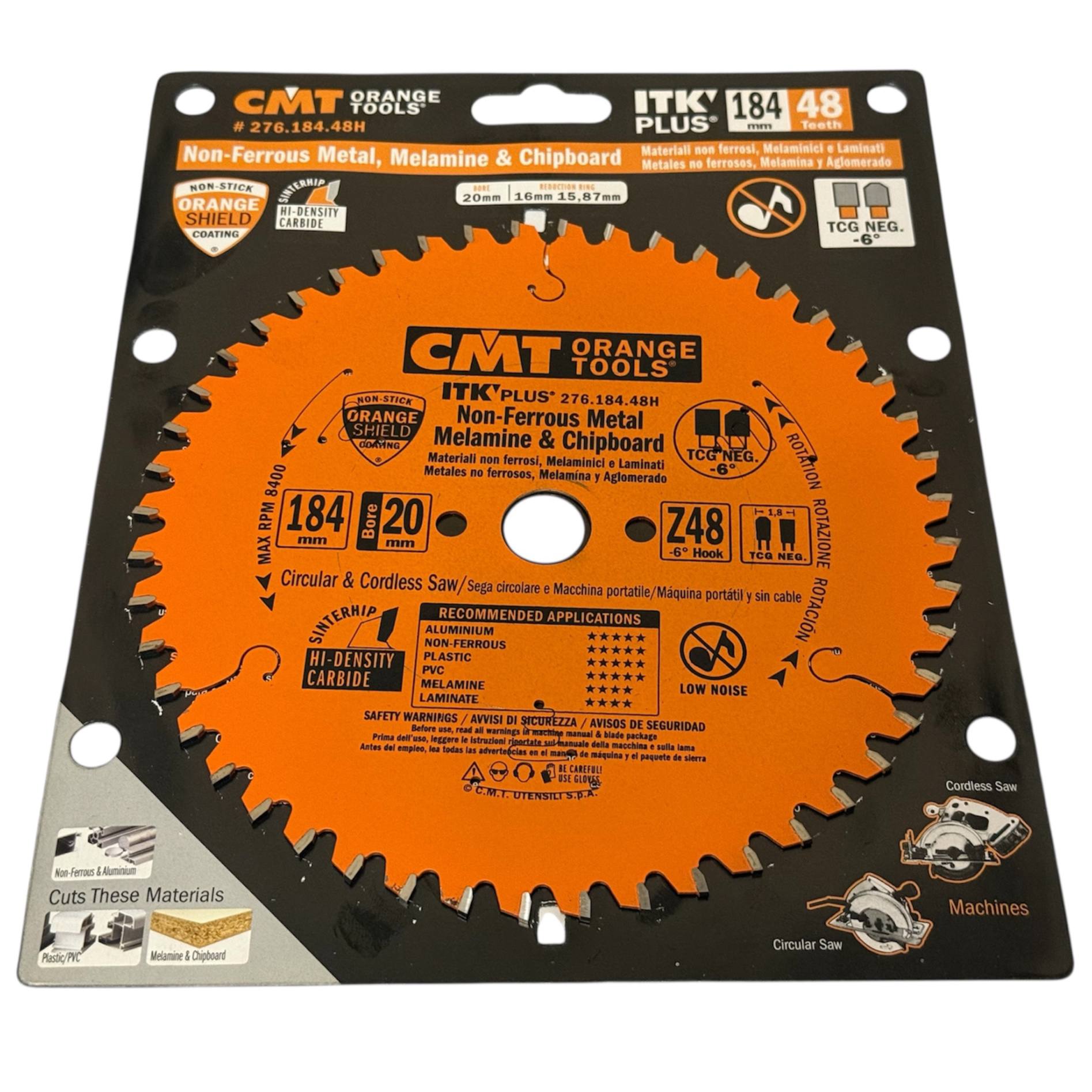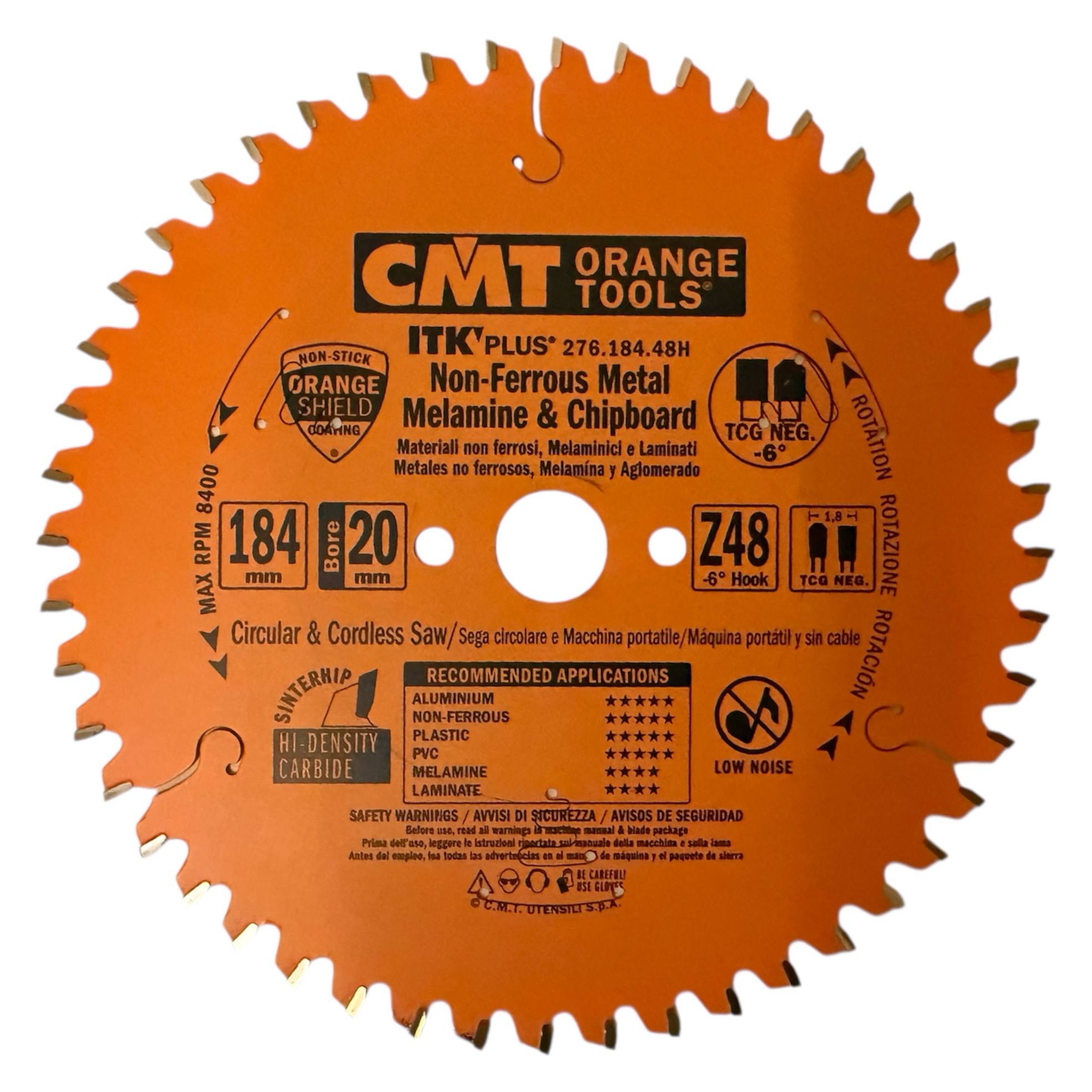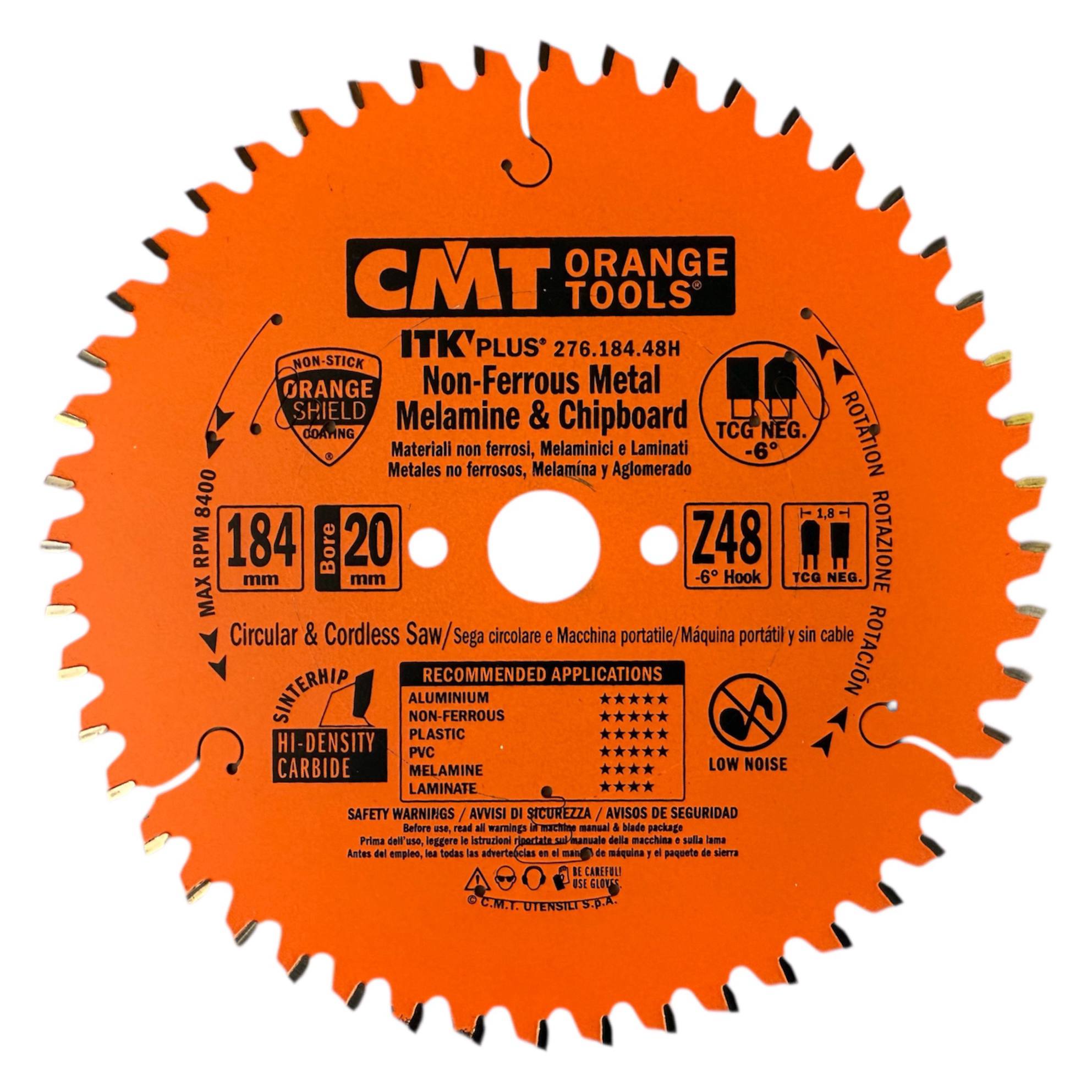 CMT 276.184.48H — пильный диск 184×20/16×1,8×48Z TCG-6 NEG для чистого реза алюминия, ламината, ПВХ, цветных металлов и композитов. Обеспечивает точность, долговечность и профессиональный результат.