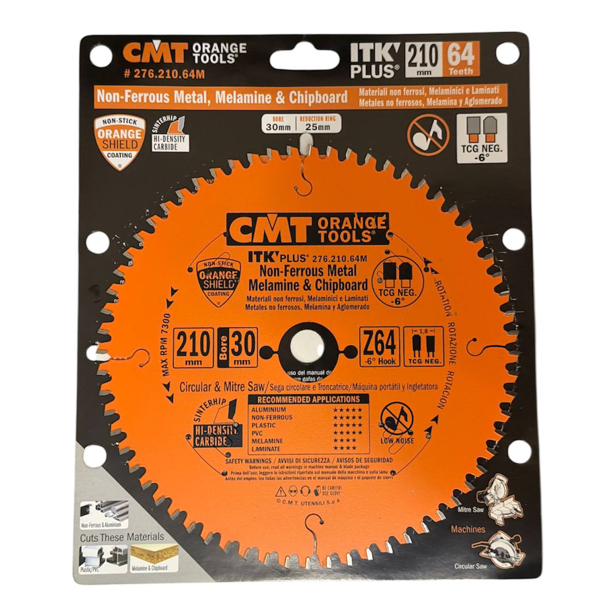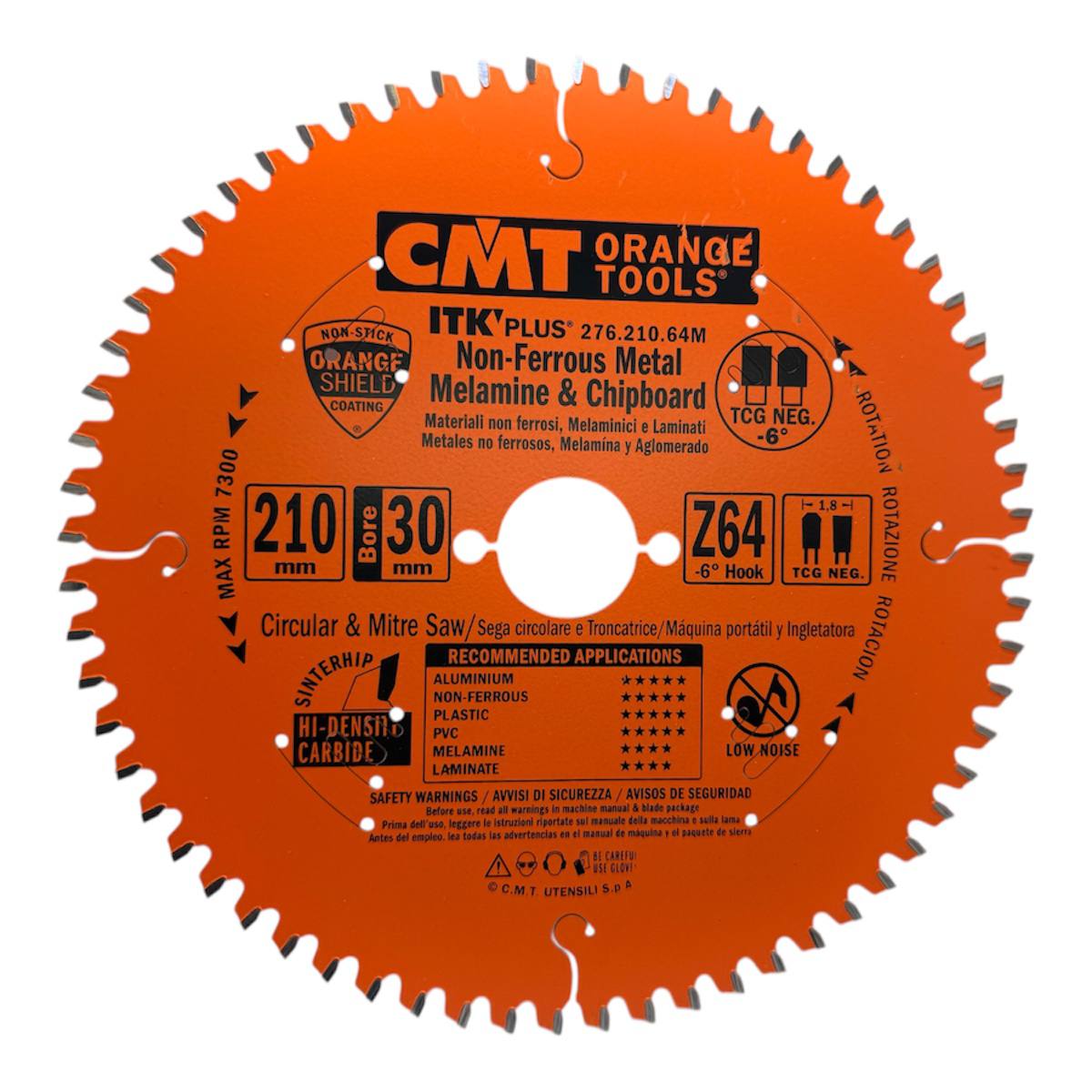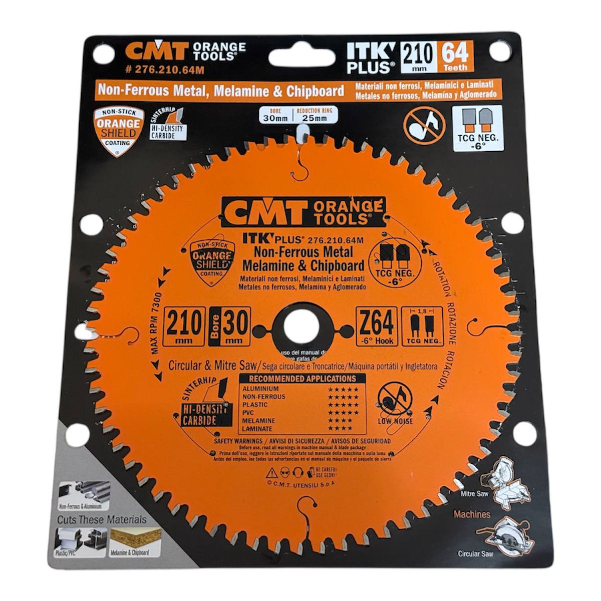 CMT 276.210.64M — пильный диск 210 ×30/25×1,8×64Z TCG-6 NEG для чистого реза алюминия, ламината, ПВХ, цветных металлов и композитов. Обеспечивает точность, долговечность и профессиональный результат.
