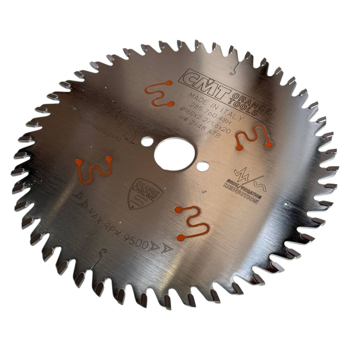 CMT 285.760.48H Orange Chrome™ — пильный диск 160 мм, 48 зубьев ATB, посадка 20 мм. Чистая резка ламинированных плит, ДСП, МДФ и фанеры без сколов, защита от коррозии и смолы.