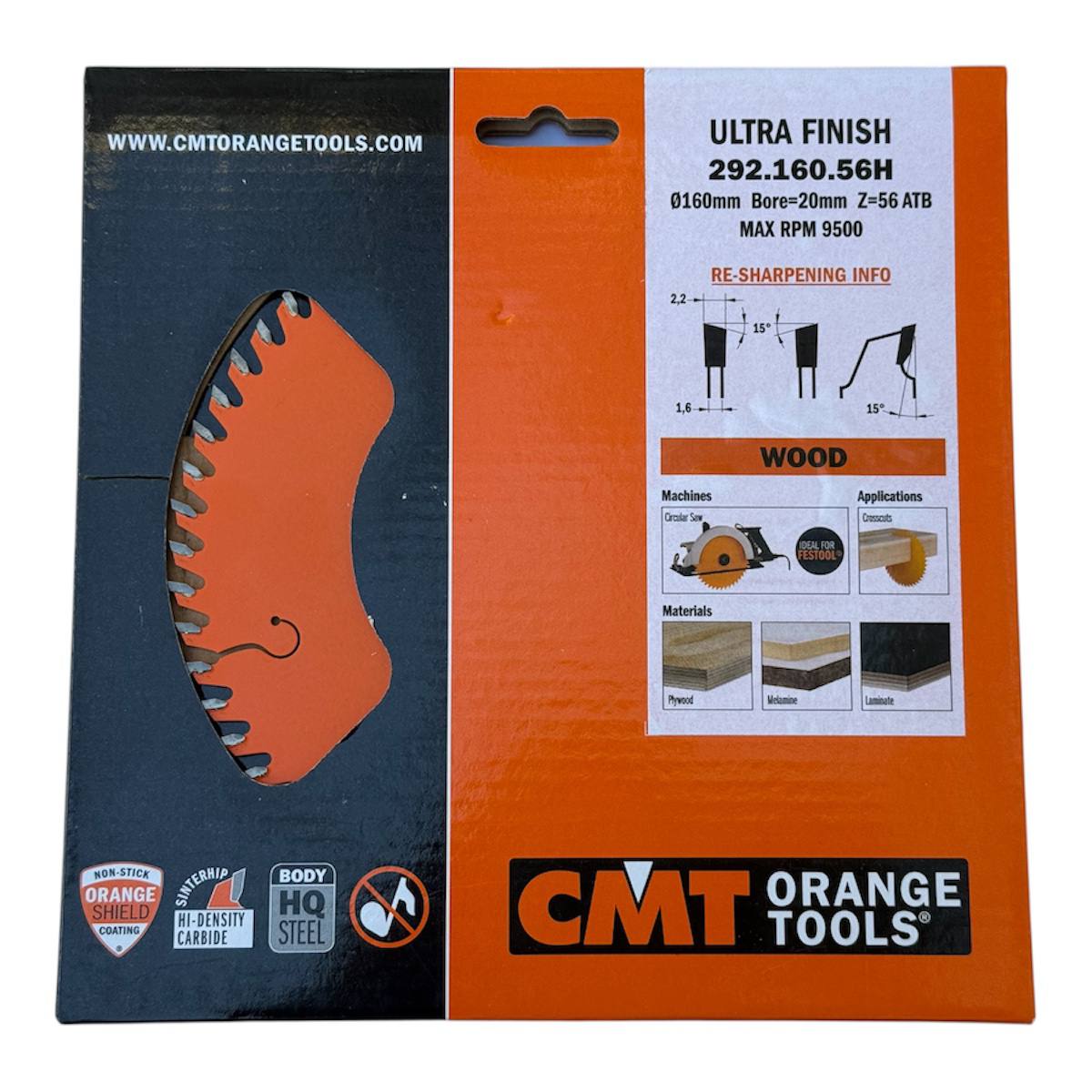 CMT 292.160.56H – пильный диск 160 мм, 56 зубьев ATB, посадка 20 мм. Чистая резка ламинированных плит, ДСП, МДФ и фанеры без сколов.
