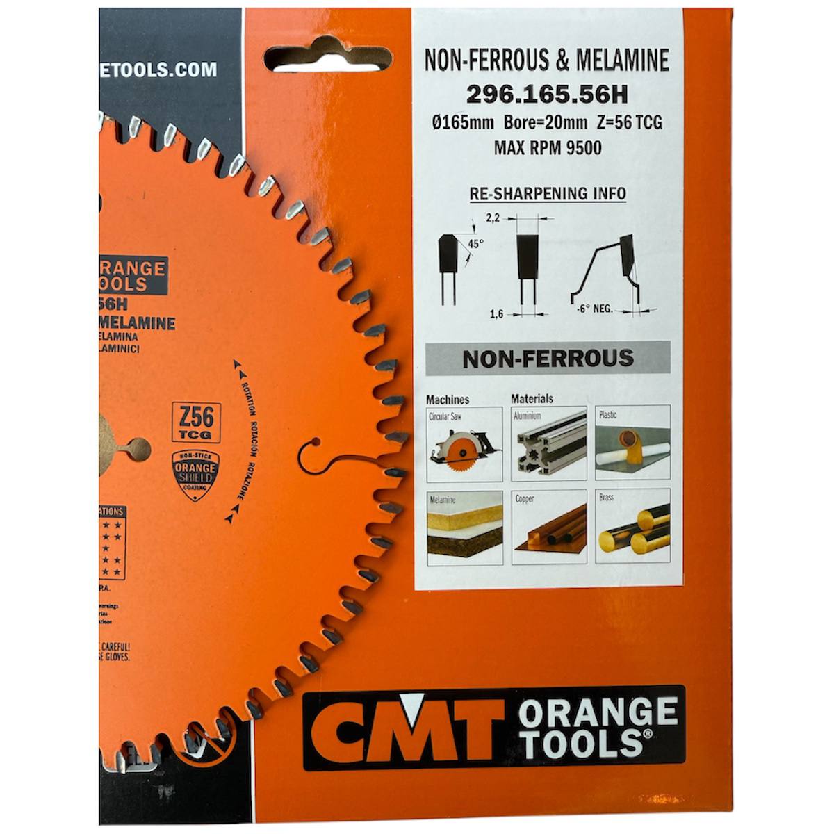 CMT 296.165.56H – Диск 165 мм х20 x2,2 x56Z -6° NEG По Алюминию ДСП