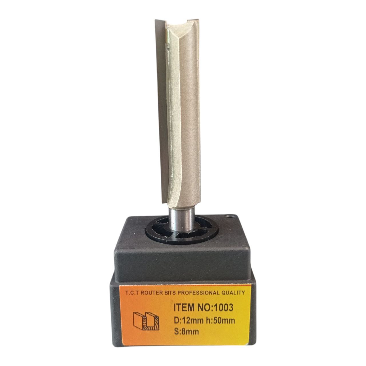 Фреза модели 1003 диаметром 12 мм и рабочей длиной 50 мм предназначена для профессионального фрезерования глубоких прямых пазов. Благодаря усиленной конструкции и хвостовику 8 мм инструмент обеспечивает стабильность, точность и чистоту реза даже при интенсивной нагрузке.