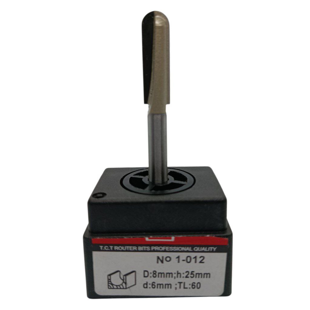 Фреза VATZO 1012 D8 h25 d6 – это галтельная пазовая фреза, предназначенная для обработки древесины с радиусным профилем. Она имеет диаметр 8 мм, длину режущей части 25 мм и хвостовик 6 мм.