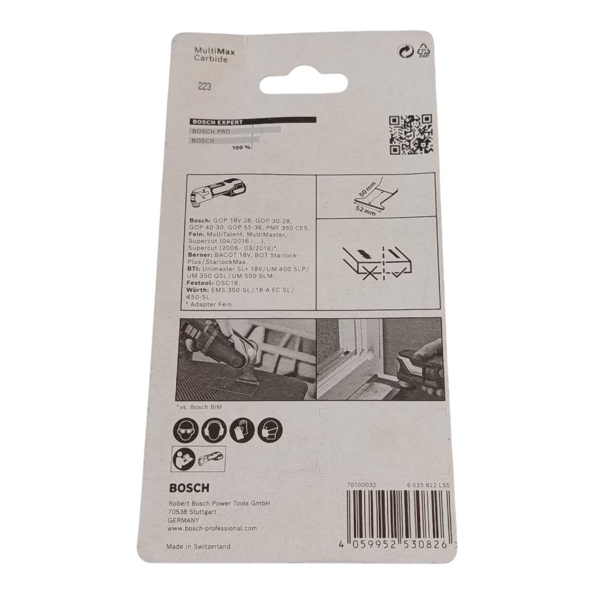 Занурювальне пиляльне полотно Bosch Expert MultiMax PAII 52 APIT (2608900030, 52×50 мм, Starlock) — професійне рішення для роботи по твердих металах, включно з нержавіючою та загартованою сталлю. Завдяки Carbide Technology забезпечує надвисоку довговічність, чистий різ та ефективність у монтажних і ремонтних роботах.