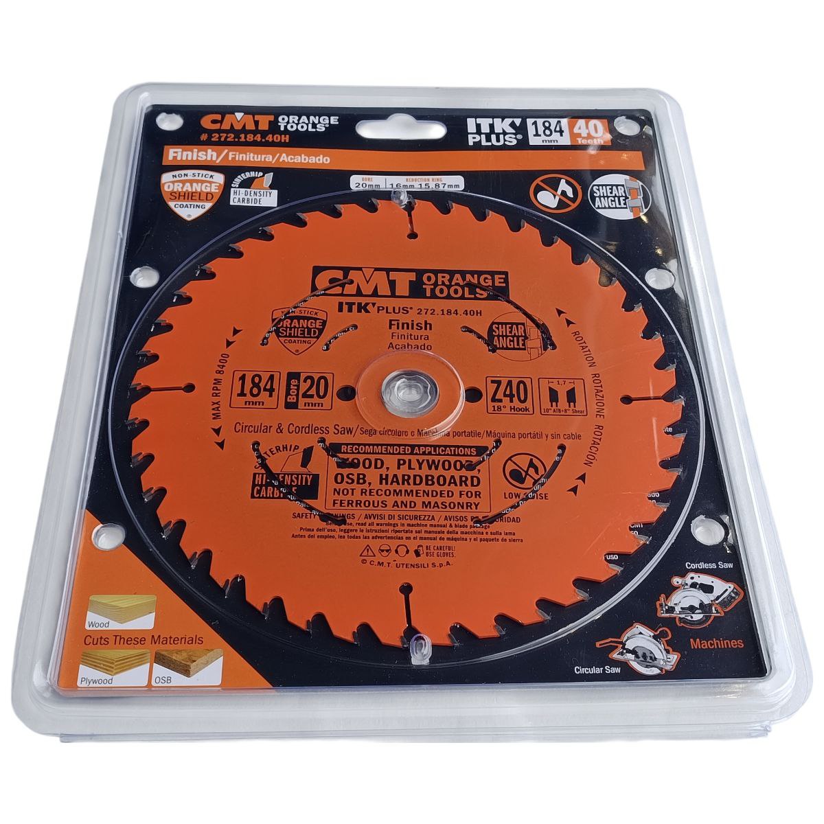 CMT 272.184.40H — професійний дисковий пильний диск діаметром 184 мм із внутрішньою посадкою 20 мм, товщиною пропилу 1,7 мм та 40 зубами. Завдяки тонкому пропилу він забезпечує чистий і акуратний різ із мінімальними втратами матеріалу та зниженим навантаженням на інструмент. Ідеально підходить для чистового розпилювання деревини, фанери, ДСП та МДФ.
