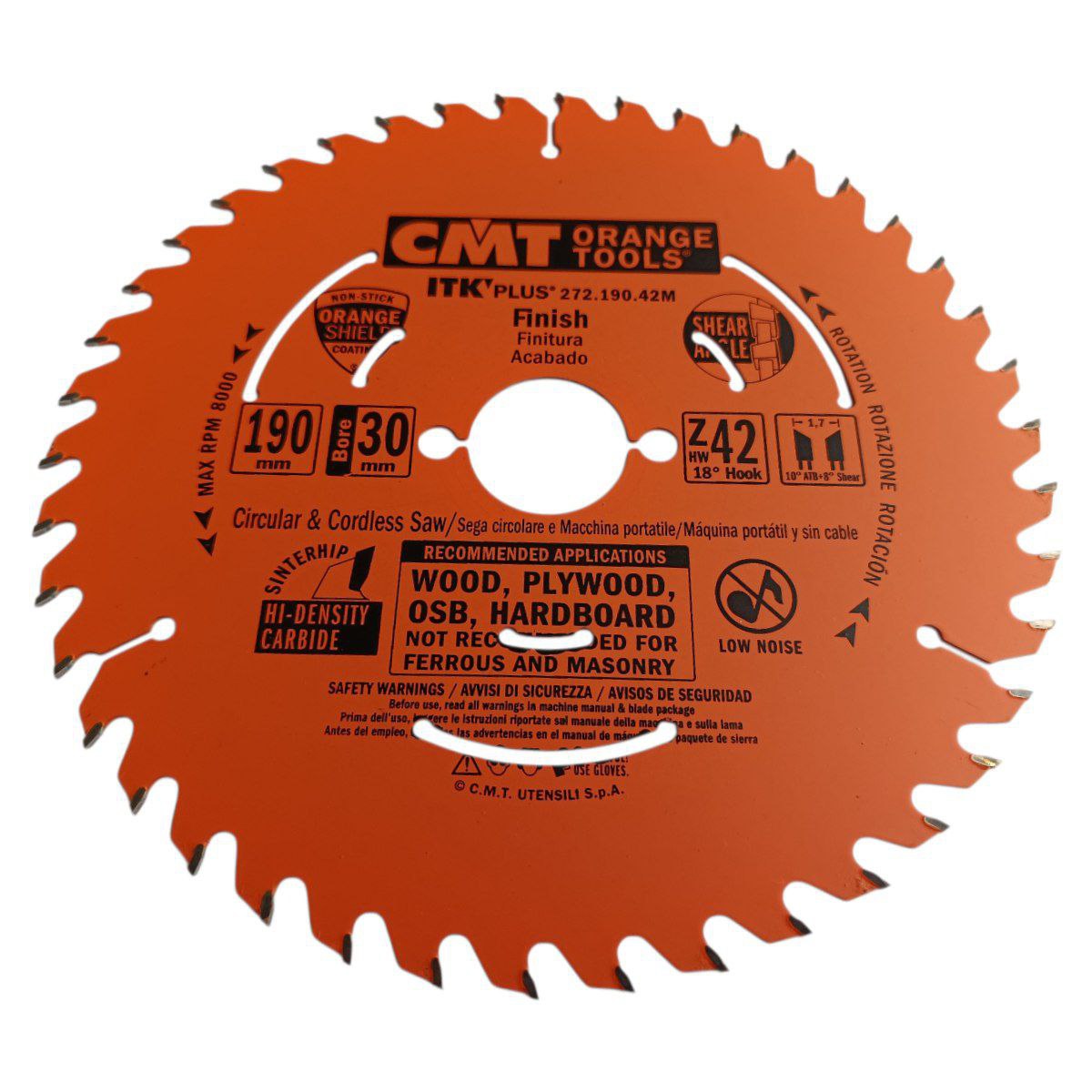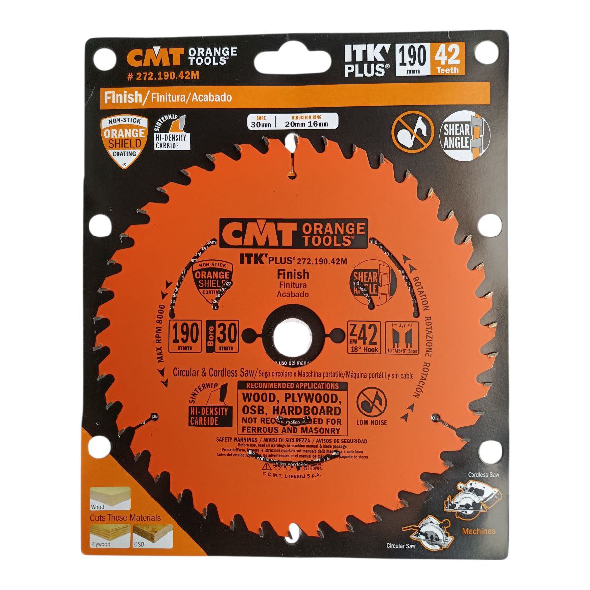 CMT 272.190.42M — пиляльний диск Ø190 мм, 30 мм посадка, 42 зуби, тонкий пропил 1,7 мм, для чистого різання деревини та плитних матеріалів.