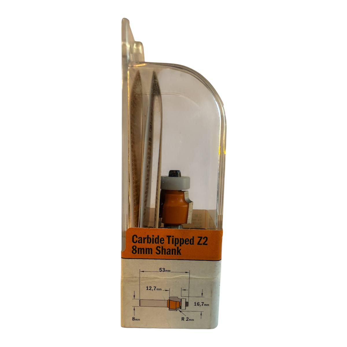 CMT Радіусна фреза (D16,7 мм, h12,7 мм, R2, L53 мм, хвостовик 8 мм, пластиковий підшипник) — ідеальний інструмент для створення плавних крайок та декоративних профілів у деревині та плитних матеріалах. Забезпечує точність і чистоту різу, підходить для професійного та аматорського використання.