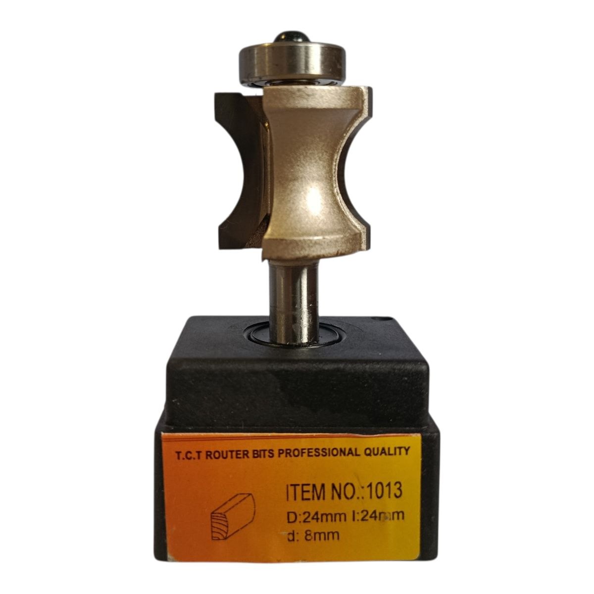 ГЛОБУС 1013 — це кромочна напівстержнева фасонна фреза з радіусом R10 мм, діаметром 24 мм, робочою висотою 24 мм та хвостовиком 8 мм. Вона призначена для декоративного профілювання кромок деревини та плитних матеріалів, створюючи плавний напівкруглий профіль.
