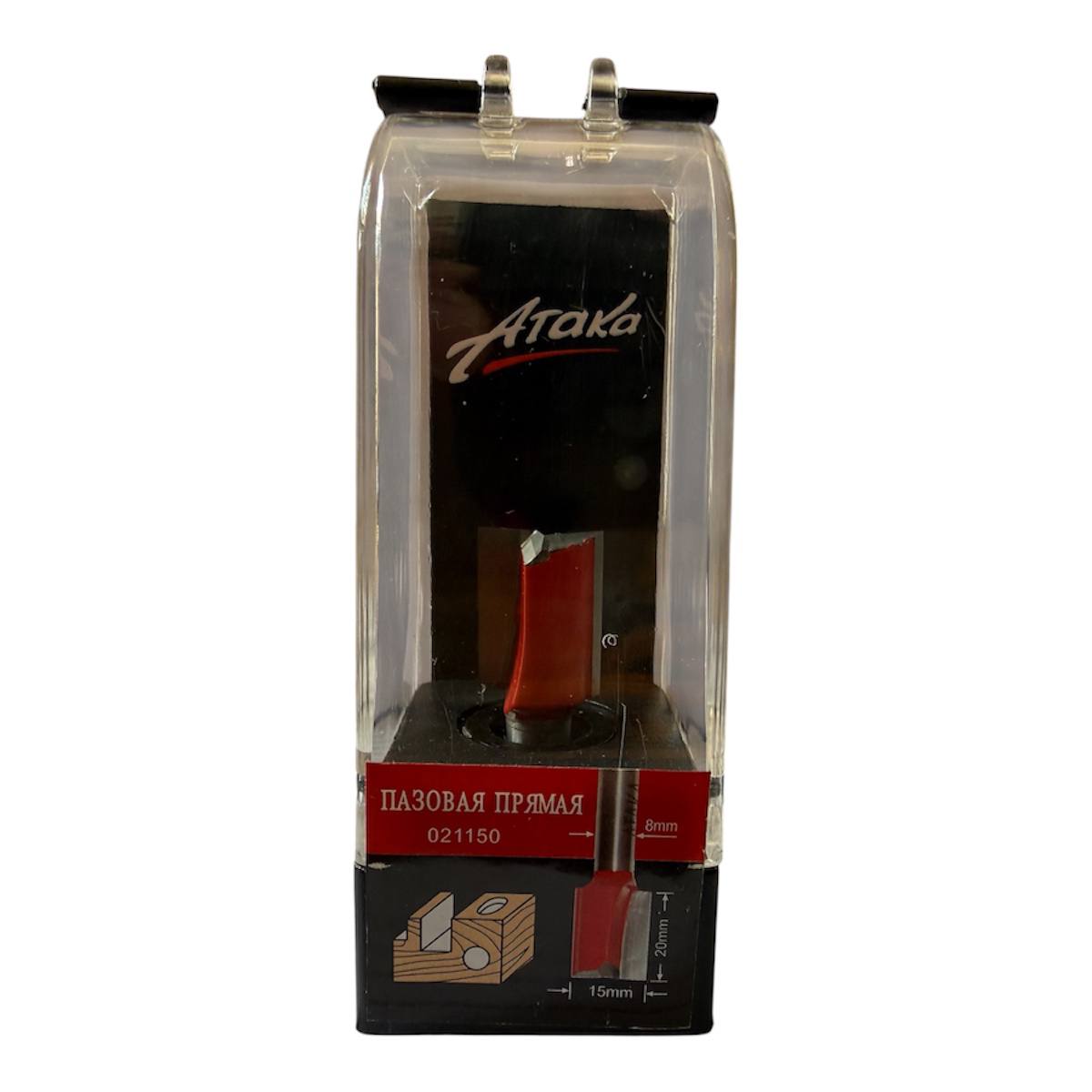 Фреза Атака 021150 — пряма пазова фреза з підрізкою, діаметром 15 мм, робочою висотою 20 мм та загальною довжиною 54 мм. Оснащена хвостовиком 8 мм і системою ріжучих зубців Z2+1, що гарантує чистий різ без сколів навіть на ламінованих плитних матеріалах.