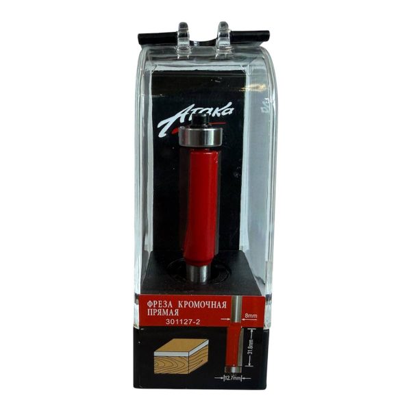 Фреза Атака 301190L (D19×h25, хвостовик 8 мм, Z2) — для копіювальних робіт по шаблону. Завдяки нижньому підшипнику забезпечує точне ведення по шаблону та чистий різ завдяки косим ножам навіть на складних заготовках. Ідеально підходить для меблевого виробництва та столярних майстерень.