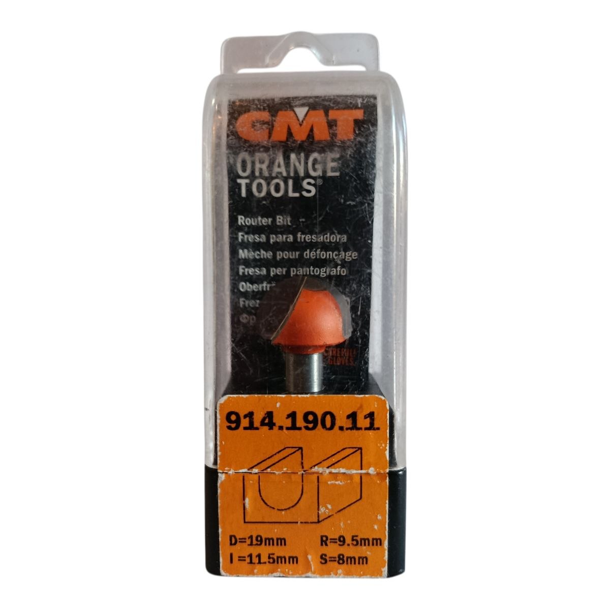 CMT 914.190.11 — півкругла сферична фреза діаметром 19 мм, робочою висотою 11,5 мм, радіусом 9,5 мм, загальною довжиною 50,8 мм та хвостовиком 8 мм. Оснащена двома ріжучими зубами з твердосплавними пластинами, призначена для вибірки пазів та декоративних канавок із напівсферичним профілем у деревині та плитних матеріалах.