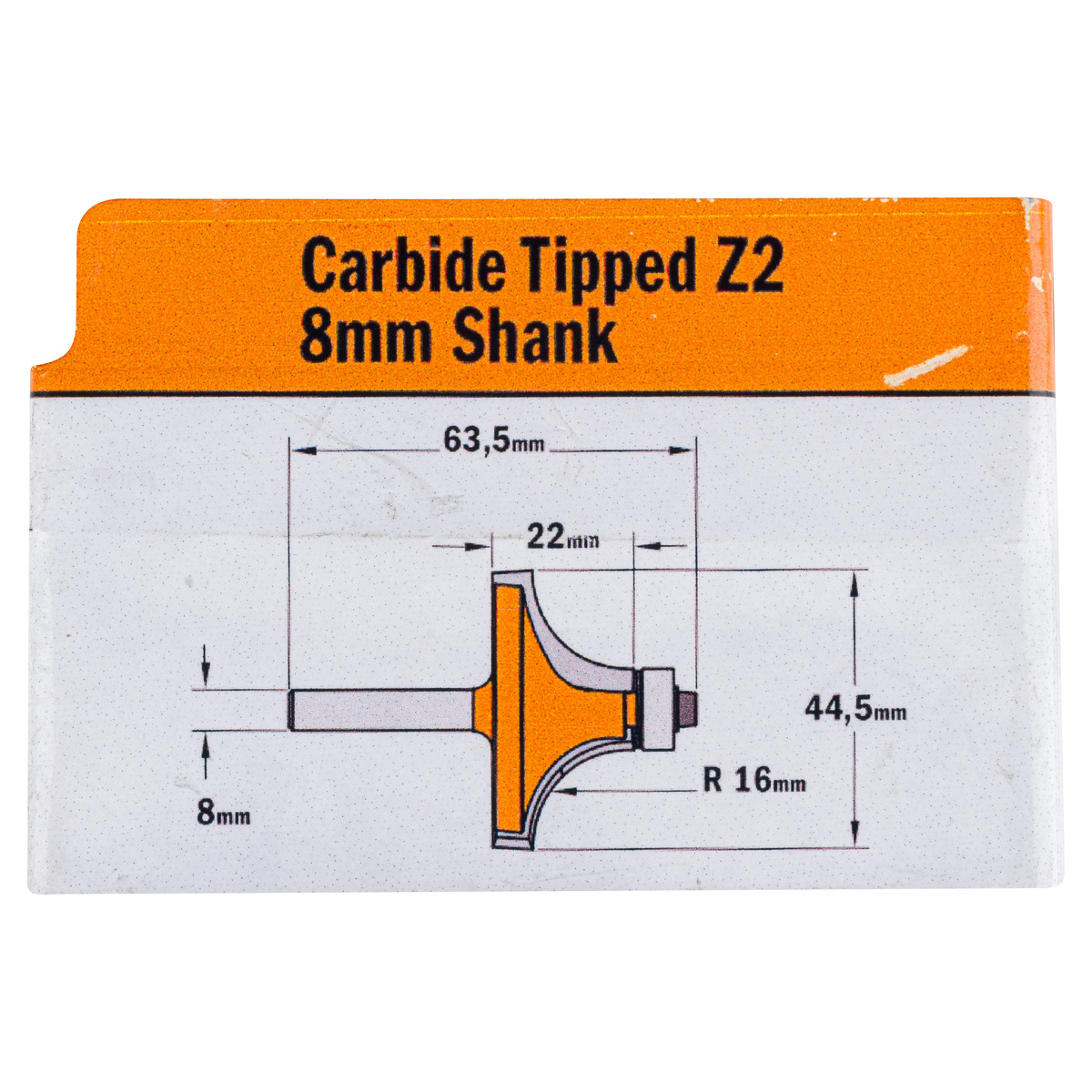 CMT 938.445.11 — кромочна калевочна фреза (R16 мм, D44,5 мм, h22 мм, L63,5 мм, хвостовик 8 мм), призначена для декоративного профілювання кромок деревини, фанери, МДФ та ДСП. Оснащена твердосплавними ріжучими пластинами, забезпечує чистий і точний різ, ідеально підходить для столярних та меблевих робіт.