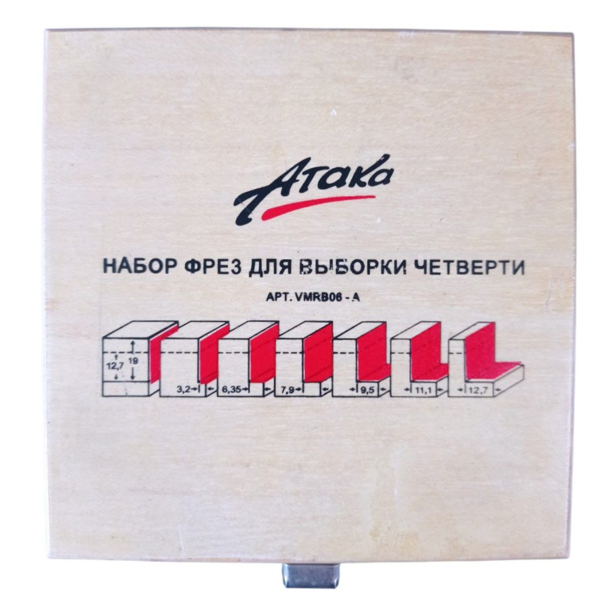 Набір фрез ATAKA VMRB06-A (7 шт.) — це професійний комплект кромкових фальцевих фрез для вибірки чверті у деревині. Він призначений для роботи на ручних та стаціонарних фрезерах із вертикальним шпинделем, забезпечує точний і чистий різ при обробці дерева, ламінату та ДСП.