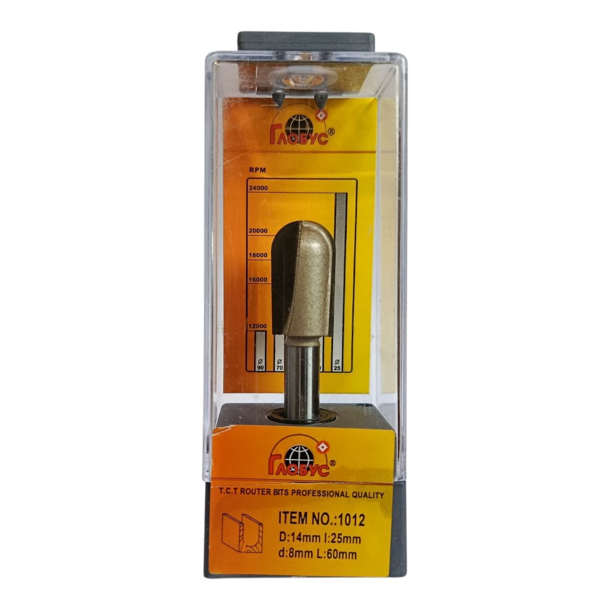ГЛОБУС 1012 — пазова галтельна фреза (D14 мм, h25 мм, L60 мм, хвостовик 8 мм), призначена для вибірки каннелюр та декоративних пазів у деревині та плитних матеріалах. Оснащена твердосплавними ріжучими пластинами, забезпечує чистий і точний різ, ідеально підходить для столярних та меблевих робіт.