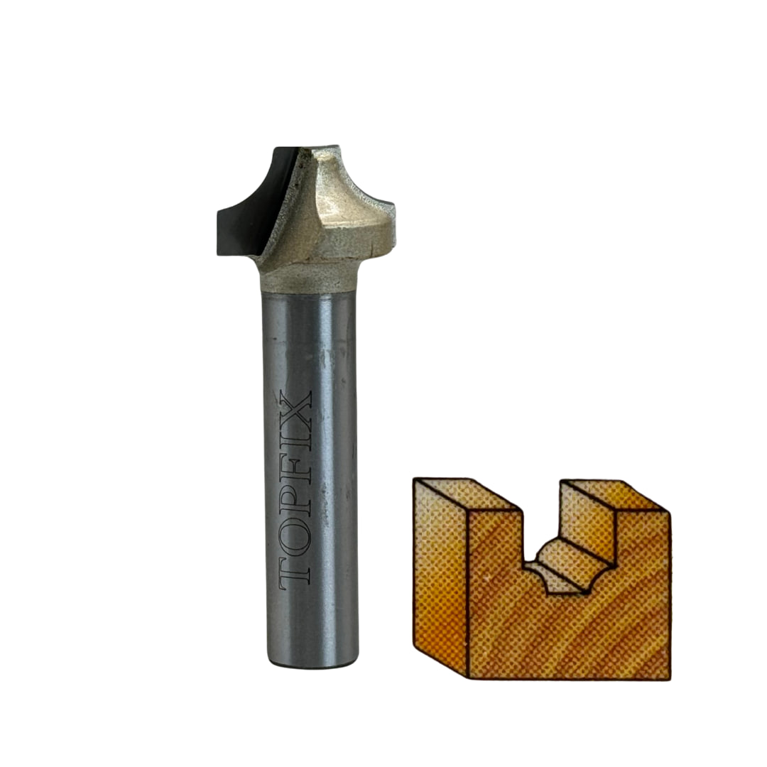 Topfix пазова фасонна фреза (R5, D16 мм, h12 мм, хвостовик 8 мм) призначена для вибірки декоративних пазів та фасонних елементів у деревині та плитних матеріалах. Оснащена твердосплавними ріжучими пластинами, забезпечує чистий і точний різ, ідеально підходить для столярних та меблевих робіт.