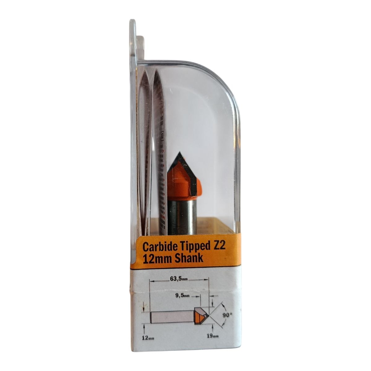 CMT 915.690.11 — це V‑подібна пазова фреза (V‑Grooving Bit) з кутом різу 90°, діаметром 19 мм, робочою висотою 16 мм, загальною довжиною 63,5 мм та хвостовиком 12 мм. Вона призначена для вибірки V‑подібних пазів, фасок та декоративного гравіювання у деревині та плитних матеріалах.