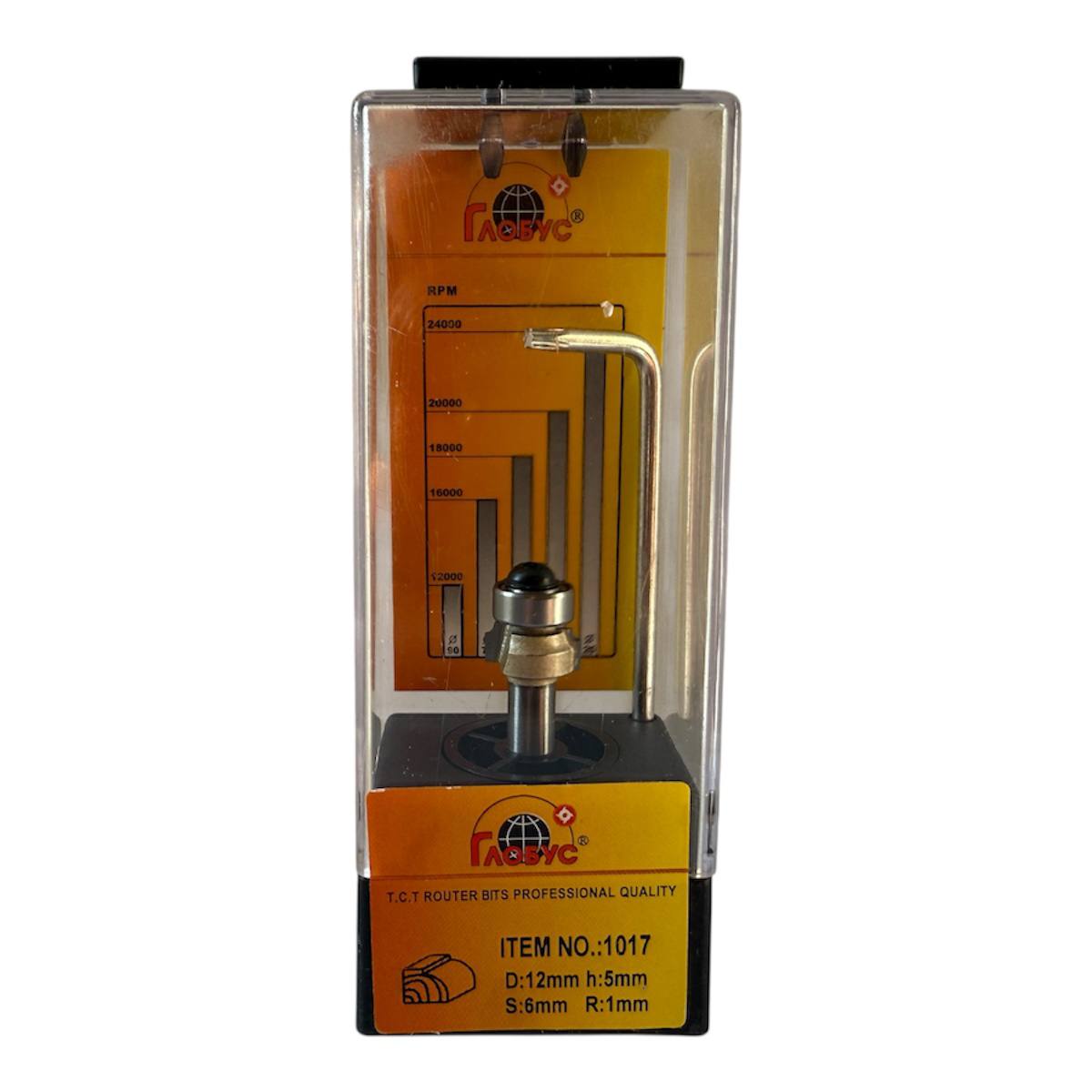 Фреза радіус 1 мм Глобус 1017 D12 h5 d6 R1 — інструмент для дрібних заокруглень і фасок. Забезпечує чисту обробку деревини та плитних матеріалів, сумісна з ручними фрезерами.